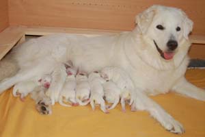 Caja-Luna hat am 10.09.2007 ihren und unseren ersten Wurf (5 Hündinnen und 2 Rüden) instinktsicher und schnell auf die Welt gebracht.