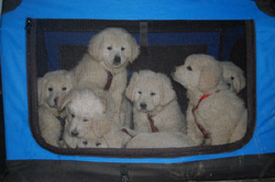 Je nach Reife der Welpen, beginnt in dieser Phase auch die Prägung der Welpen auf unterschiedlichste Menschen und andere Artgenossen. Die Welpen lernen ab diesem Zeitpunkt verschiedene Menschen kennen, wie Kleinkinder, Schulkinder, Jugendliche, Erwachsene (Männer und Frauen); Senioren und auch Menschen mit Behinderungen. Auch dieser Prozess geschieht sehr sorgfältig, damit die Welpen zu keiner Zeit überfordert werden. In dieser Phase sind dann auch unsere Welpeninteressenten besonders willkommen, die dann mit ihrem Besuch auch zur Prägung beitragen. Hierbei dürfen sie sich gleichzeitiig davon überzeugen, dass wir bei der Aufzucht unserer Welpen sets sehr bemüht sind, das Beste zu tun. Gleichzeitig können sie Mutter und Welpen zusammen zu erleben. So ist es dann möglich sich wirklich ein eigenes Bild von einer Zuchtstätte zu machen.