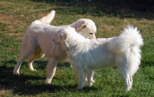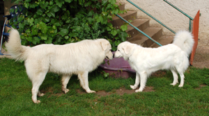 Erstes Beschnuppern von Caja-Luna & Dino im Juli 2008
