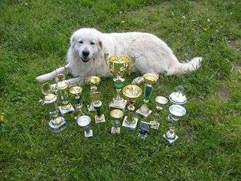 Titel: V, CAC, CACIB, BOB, Tschechischer Jugendchampion, Tschechischer Champion und "Grand" Champion, Klubsieger und Memorialsieger 2006 Klubsieger 2007 und 2008 in Konopiste, Tschechische Republik