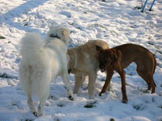 Hundeschule ist für uns Pflicht. Hier lernt der Cuvac mit seinen Artgenossen zu kommunizieren und sich zu entsprechend zu verhalten. Auch Regeln im Zusammensein und - leben mit seinen Zweibeinern werden kennen gelernt und geübt. Selbstverständlich muss dieses im Alltag ebenfalls immer wieder trainiert und gefestigt werden. Denn es gibt Situationen im Leben, in den selbst ein Cuvac hören muss :-) Wir wollen keinen Hund, der nur gehorcht und sich unterordnet, sonst hätten wir uns für einen andere Rasse entschieden, dennoch ist es uns wichtig, dass sich unsere Hunde an bestimmte Regeln halten und nicht selbst entscheiden, was zu tun ist. Wir nutzen die Hundeschule auch um unseren Hunden bestimmte Angebote der Beschäftigung und Auslastung in Gemeinschaft mit anderen Hunden zu bieten, z.B. Mantrailing, Schnüffelstunde etc.